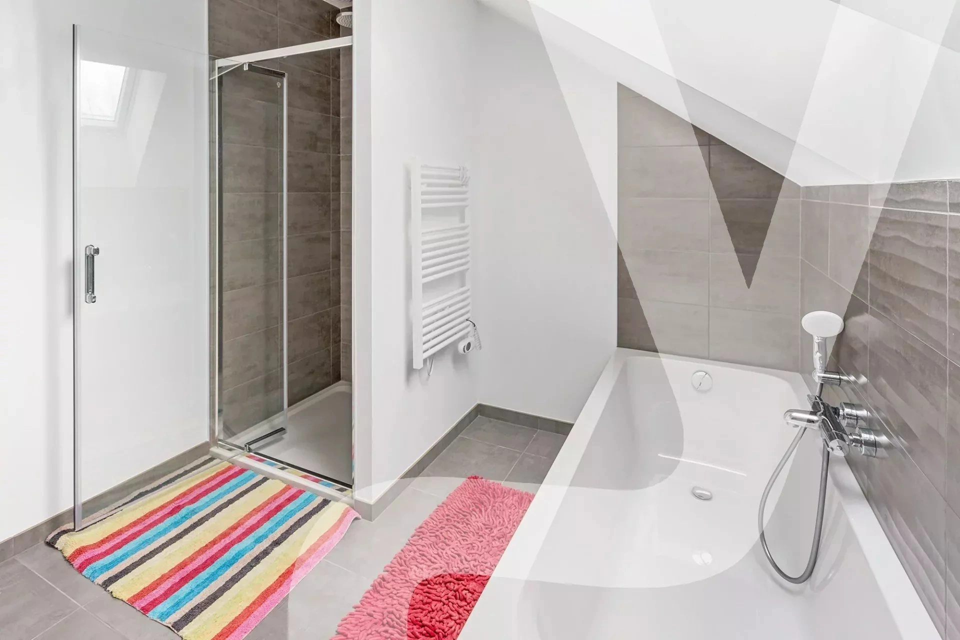 Le salon-séjour s’ouvre sur une grande terrasse de plus de 45m² exposée plein Sud sans vis-à-vis ou vous pourrez recevoir amis et familles en toute quiétude.